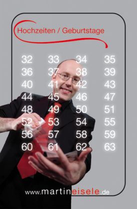 Denken Sie bitte an eine Zahl von 1-60. Dann beantworten Sie bitte jeweils die Frage, ob Sie Ihre gedachte Zahl auf dem untenstehenden Bild sehen oder nicht!