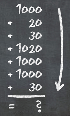 Addieren Sie die untenstehenden Zahlen im Kopf (von oben nach unten) und geben Sie dann Ihr Ergebnis zur Überprüfung ein!