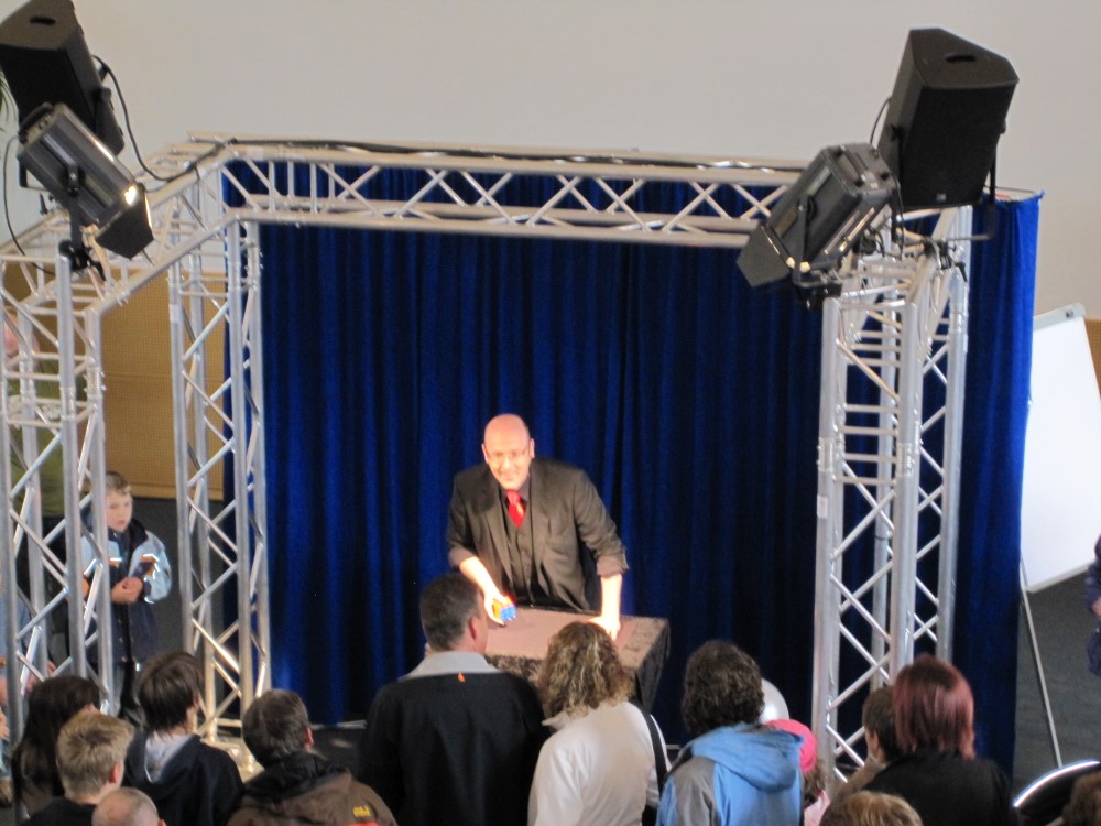 Bieten Sie Ihren Gästen das besondere Rahmenprogramm. Eine Kombination aus einer Show für alle (Frontal- bzw. Bühnenauftritt) sowie das hautnahe Erlebnis, wenn direkt an den Tischen der Gästen die Gesetze der Physik aus den Angeln gehoben werden. Die Gäste werden über diesen Abend noch lange reden!